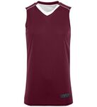 Color side is 100% polyester propelit micromesh wicking knit * White side is 100% polyester wicking knit * Wicks Moisture * Ladies' fit * Outside locker label * V-neck collar * Contrast color inserts and piping * Fully reversible * Each layer hemmed separately for easy embellishment * Designed to be NFHS compliant
